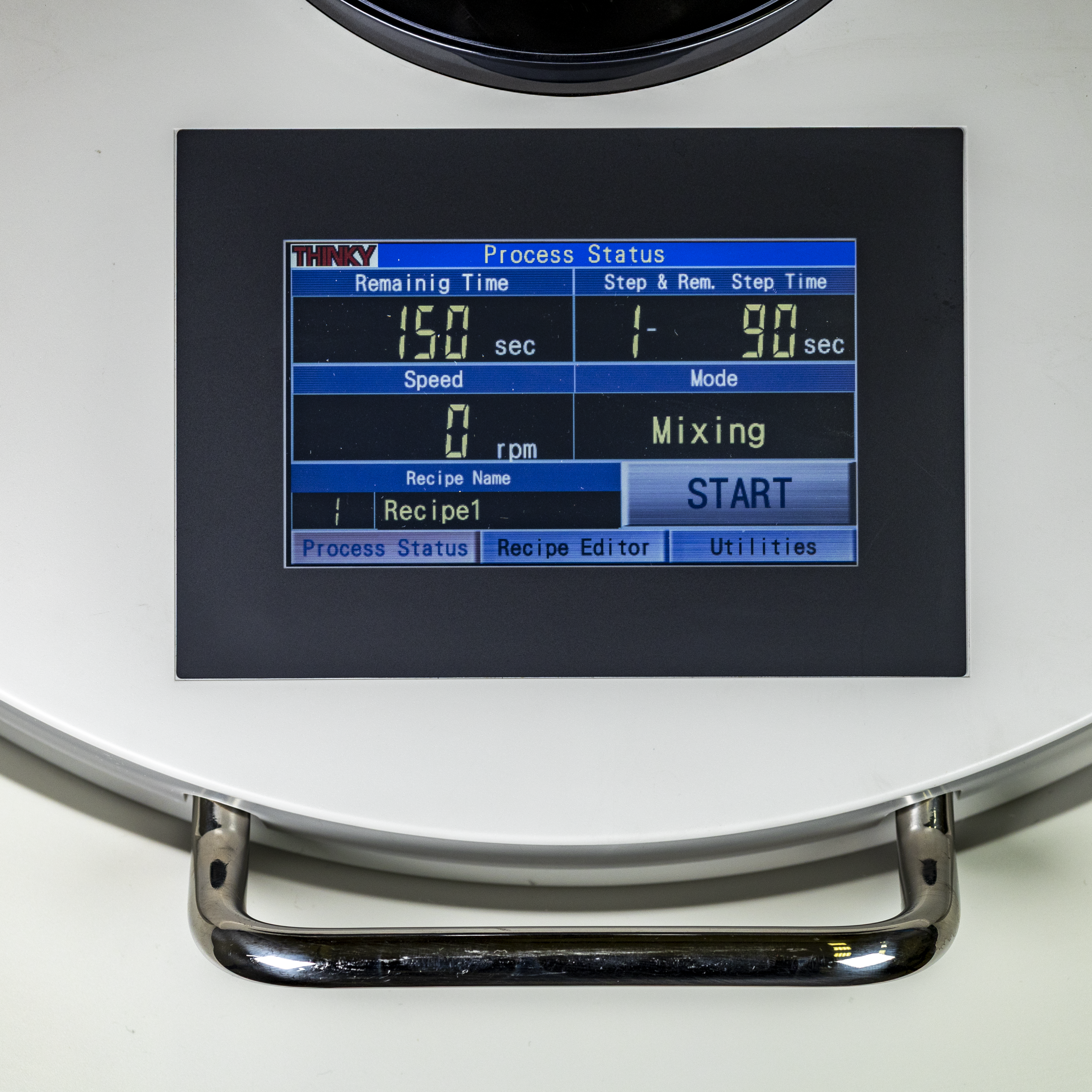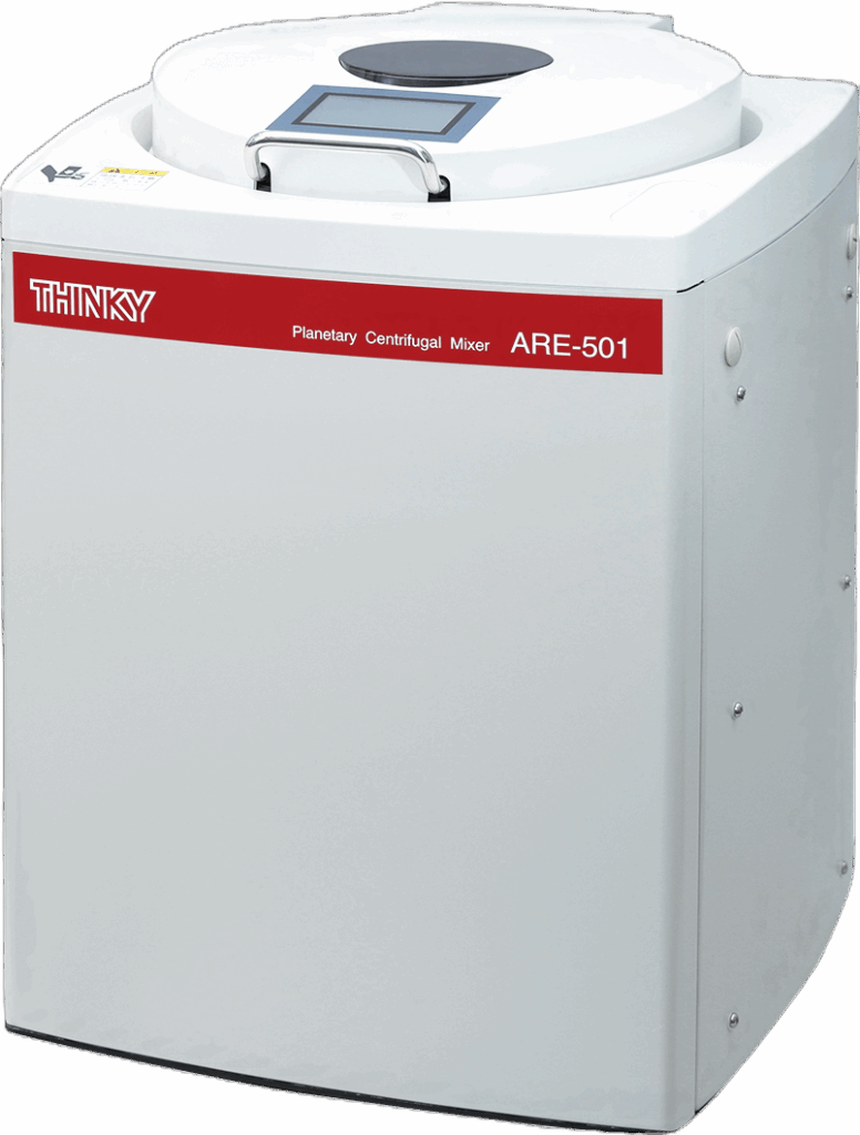 THINKY ARE-501 features an increased maximum revolution speed, significantly enhancing its mixing power and making it suitable for a broader range of materials and applications. Additionally, the optimized revolution-to-rotation ratio facilitates seamless recipe scaling from smaller THINKY models, streamlining the transition from lab-scale development to full-scale production.